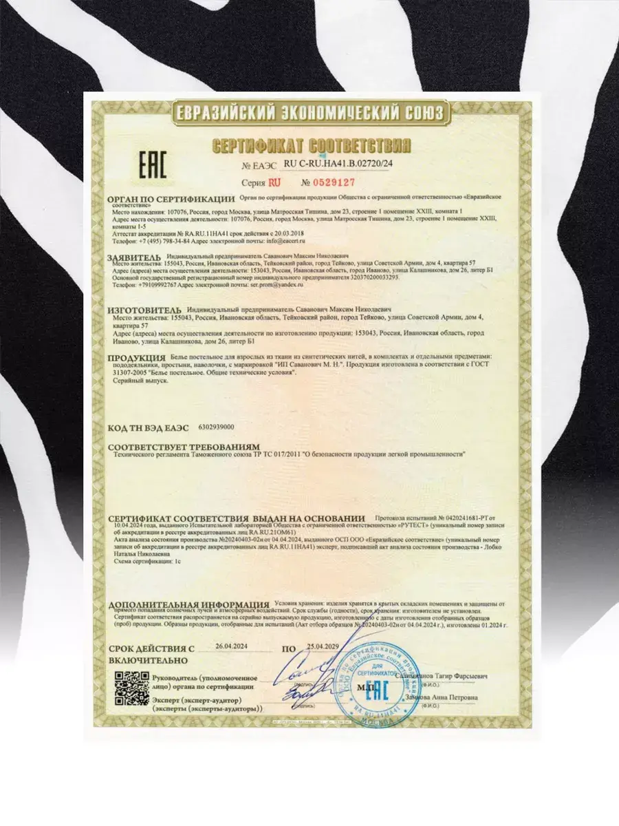 Двуспальный комплект "Кабарега" Иваново, это идеальный выбор для тех, кто ценит комфорт, для двух спальной кровати. Этот 2х спальный набор принадлежности из высококачественного полисатина сочетает мягкость, прочность и долговечность, обеспечивая приятные ощущения на коже. Пододеяльник и наволочки без застежек, что упрощает уход. Бельё с принтом Зебра добавит интерьеру уюта и элегантности. Монохромная расцветка гармонично впишется в любой стиль от классики до модерна. А ещё это изделие может заинтересовать тех, кто ищет постельное белье 2 х спальный комплект или постельное белье семейное, например, на подарок. Выбирайте ивановские постельные принадлежности и наслаждайтесь качеством и красотой!