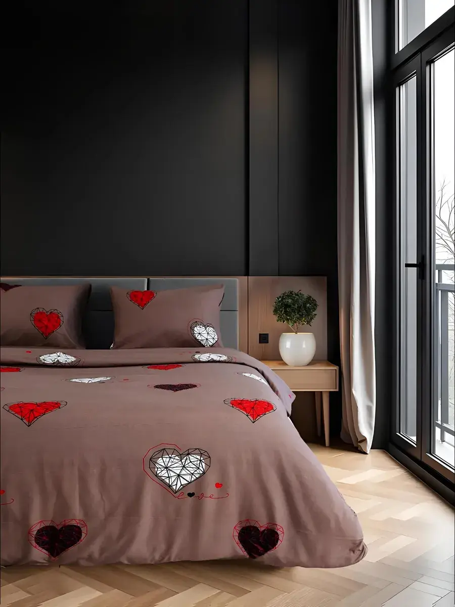 Постельное белье Евро "Хука" с очаровательным рисунком в виде сердец станет прекрасным дополнением вашей спальни. Набор из мягкого полисатина включает в себя пододеяльник, простыню и две наволочки, создавая уютную и романтическую атмосферу. Полиэстер, из которого изготовлено белье, приятен на ощупь и не требует особого ухода. Классическая простыня и наволочки без застежек обеспечат удобство использования. Подарите себе и своим близким сладкие сны с нашем постельным бельем.
