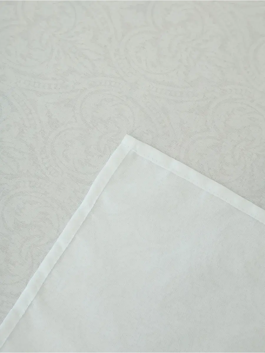 Текстильная скатерть прямоугольная, размером 150х200 для обеденного стола. Универсальный размер подойдет для большинства кухонных столов квадратных, прямоугольных и круглых. Белый цвет с классическим рисунком добавит эстетики и стиля в любой интерьер кухни, столовой или гостиной. Тканевая скатерть подойдет для повседневного использования, так как состав используемой ткани долговечен, не впитывает пятна, выдерживает большое количество циклов стирки и не мнется.